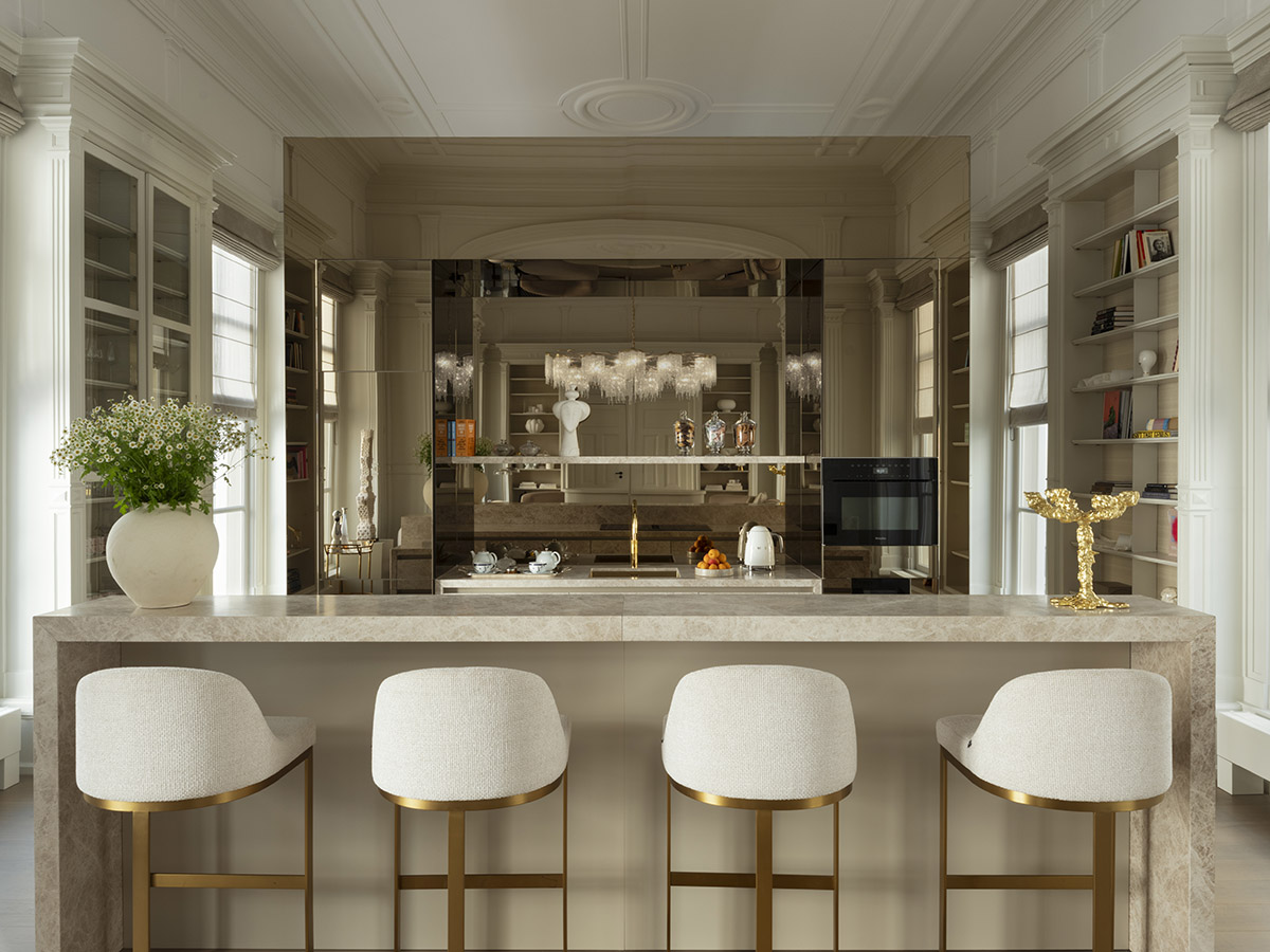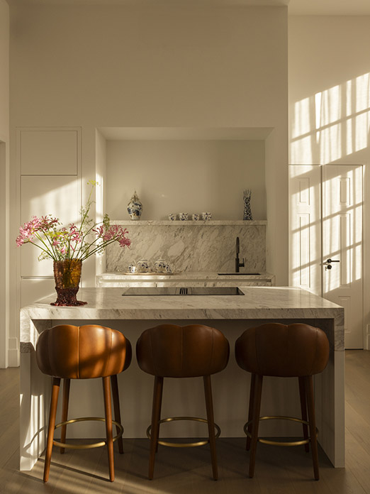 Herengracht House combines classical references with modern sophistication. Materials, textures, and decorative details echo Amsterdam’s mercantile past, while the atmosphere is defined by understated elegance — a stylish home in the heart of the city.