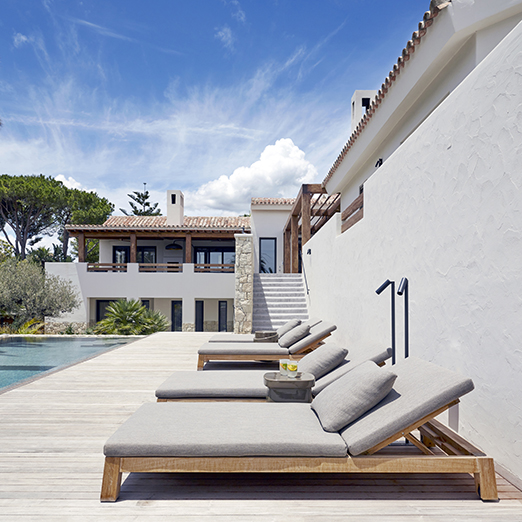 The GIJS series is designed for relaxation. Armchairs, loveseats, daybeds and sun loungers with wheels and adjustable backrests are supported by a teak frame and upholstered in high-performance outdoor fabrics that invite you to unwind.