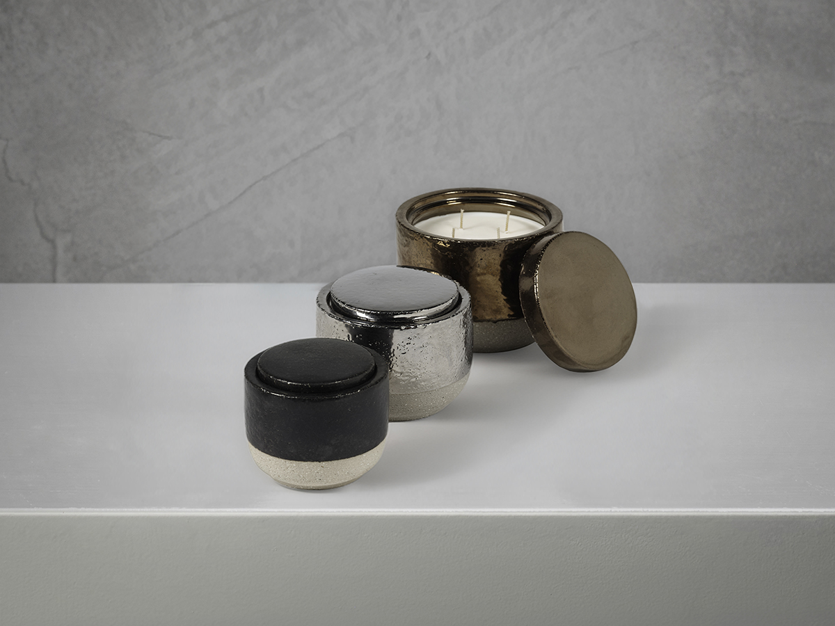 Elke kaars wordt met de hand gegoten in een geglazuurde keramieken houder met een passend deksel. De ambachtelijke glazuren vangen het licht van de vlam en creëren een subtiel spel van schaduwen. Lang nadat de kaars is opgebrand, blijft de houder een blijvend object in het interieur.