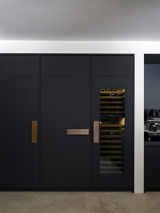Premium appliances, including a Wolf range and a built-in wine climate cabinet, enhance both functionality and comfort. Together, these elements create a warm and elegant focal point at the centre of the home.